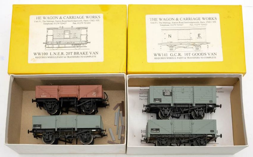 A group of four O gauge kit built 13 ton open wagons: (maker unidentified, associated boxes)