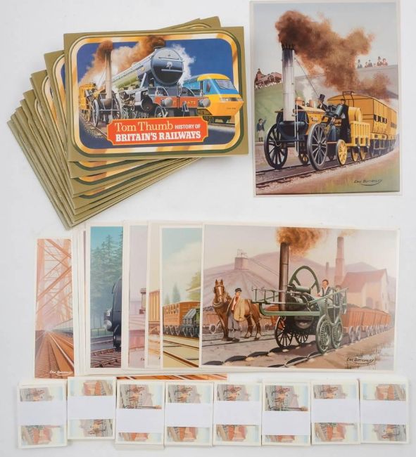 Eric Bottomley. Ten signed albums of Tom Thumb 'Britains Railways' cigar card series trade cards: comprising two full albums and eight sets of cards, together with photographs of the original artwork commissioned by Imperial Tobacco in 1987 and a letter of authenticity by the artist.