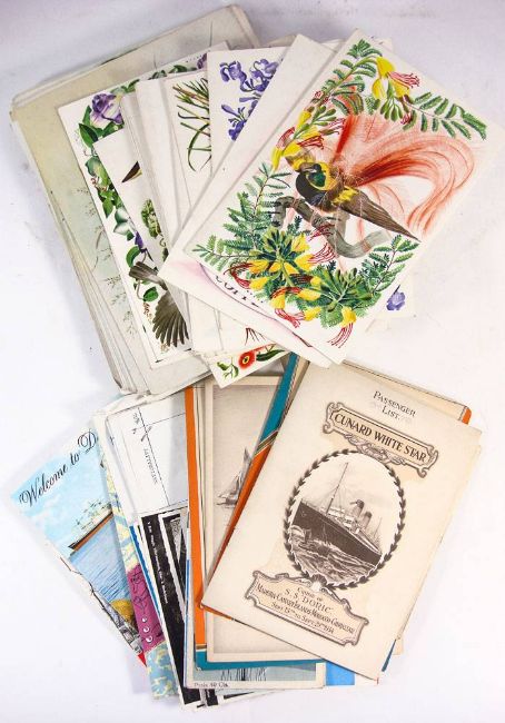 A collection of Cunard White Star, P&O, White Star Line and other passenger lists, menus and ephemera,: including a group of Union Castle Line Menu covers, various vessels including SS Doric.