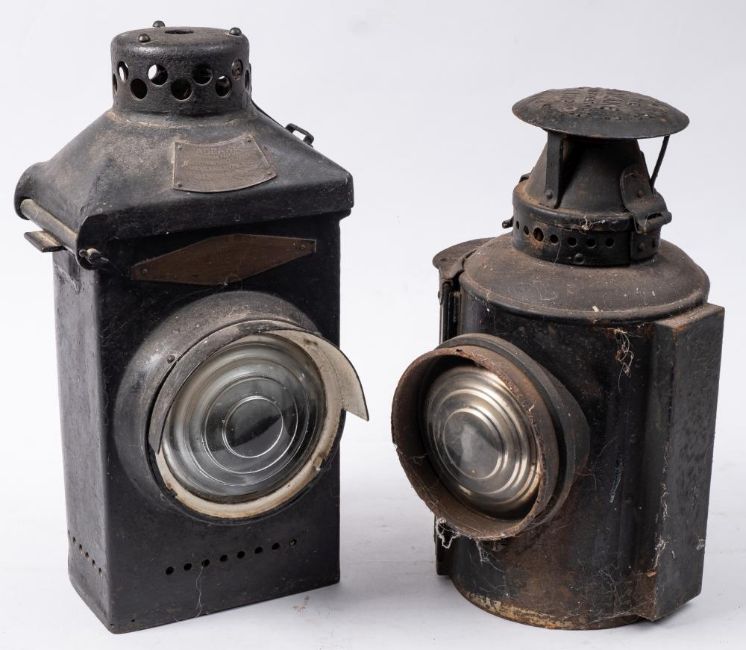 An Adlake 'Non-Sweating' lamp marked 'LMS Railway' together with an Adlake No.22 signal lamp: both lacking burners (2)