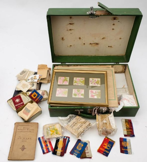 Five albums of Kensitas Silk Flowers: comprising two small and three medium size sets, together with a collection of various loose silk cards and a framed set of silk regiments.