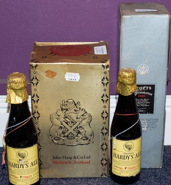 A bottle of Dimple Haig in original box: together with a bottle of Croft's Commemoration Port and two bottles of Thomas Hardy's Ale (4)