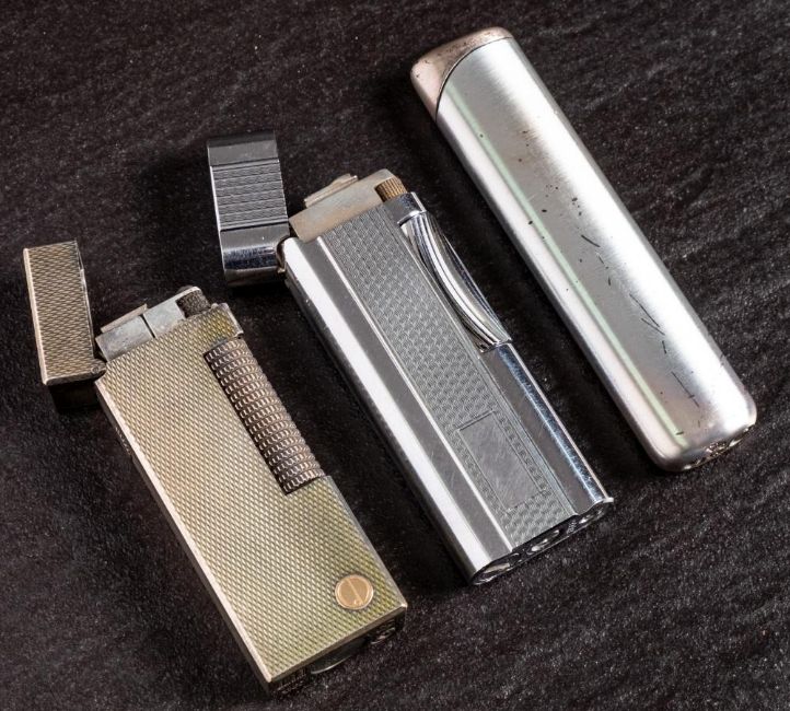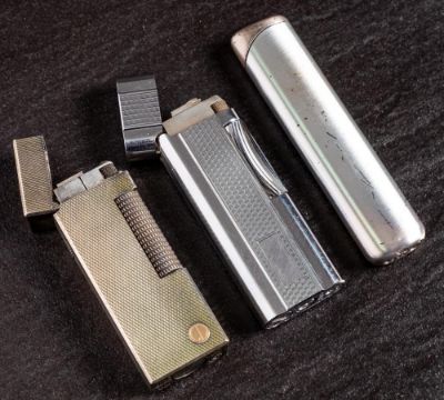 A Vintage Dunhill rollergas lighter: with silver plated milled body, together with two other lighters (3)