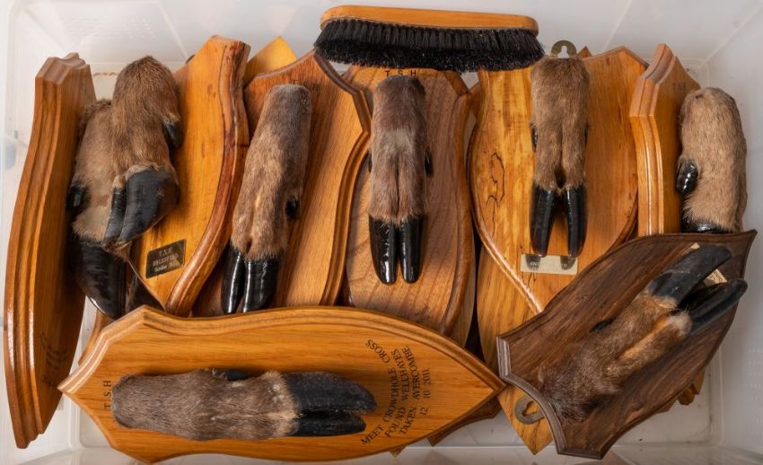 A collection of fifteen Tiverton Stag Hounds deer slots: each mounted on a wooden shield plinth with dates (15)