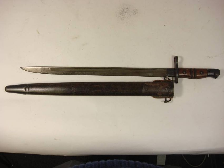 A US Model 1917 bayonet by Remington: the blade stamped as per title, in a black leather scabbard with first style scabbard hanger by Grafton and King.