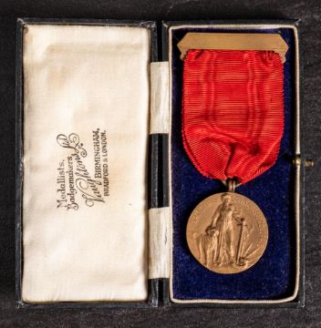 A National Canine Defence League bronze medal awarded to 'Kerridhu' for giving warning of fire, 1930: in a black leather Vaughtons case.