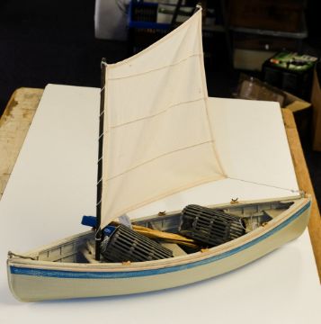 An early 20th century German toy upright piano: with xylophone to upper section, together with a model of a fishing boat (2)