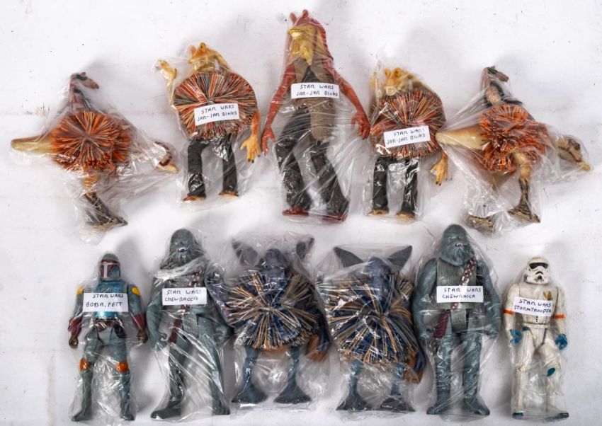 A group of ten JusToys Star Wars 'Bend-Ems' figures including Darth Vader and Admiral Ackbar: (some duplicates) together with a collection of various other figures and Star Wars mugs.