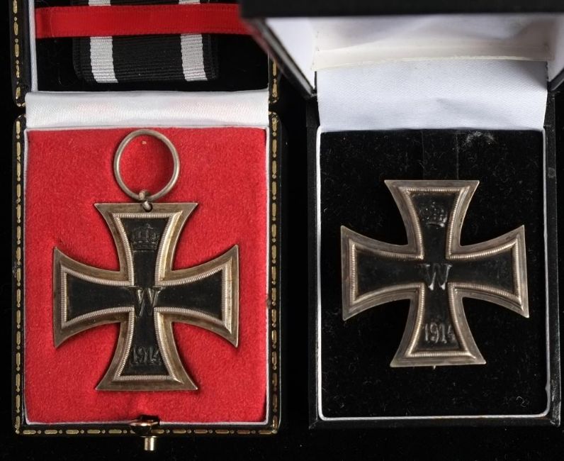A WWII Iron Cross , First Class: in associated case together with a Second Class example (2)