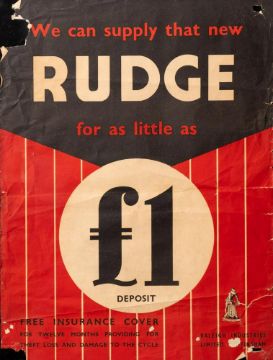 A tinplate 'Phillips Bicycles' advertising sign: depicting a cycling couple on a quay inscribed 'Renowned The World Over', 70 x 48cm, together with a BSA Bicycles poster and a Rudge (Raleigh) poster (worn) (3)