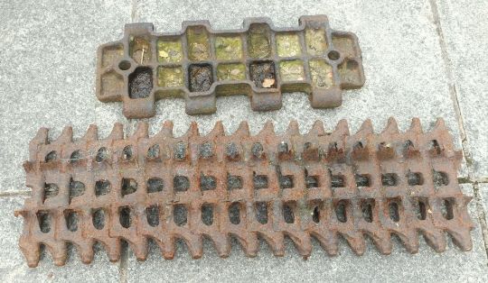 A WWII Sherman tank track link,: 50cm wide, together with a section of armoured vehicle track links (2)