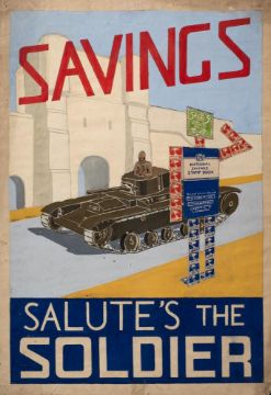 An original Directorate of Accident Prevention poster 'What Goes Up-Must Come Down, But Make Sure it's Locked': illustrated by Manwaring and published by Fosh & Cross Ltd, 49x36cm, together with an artist's draft for National Savings Stamps and a group of reproduction WWI & WWII posters.