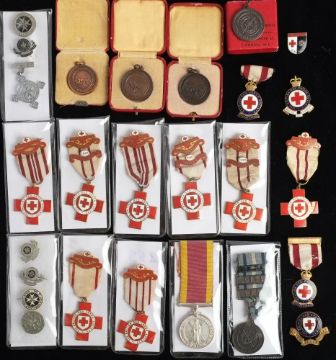 A collection of British Red Cross Society Long Service jewels: together with several St John's Ambulance lapel badges and Royal Life Saving Society Proficiency medals.