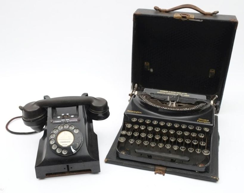 A Remington 'Home Portable' typewriter in black case, together with a black Bakelite telephone (2):
