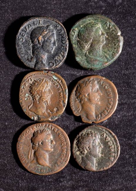 A group of seven Roman copper coins: including Marcus Aurelius, Domitian, Severus Alexander, Julia etc.
