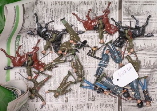Britians and other Military figures: including WWII British Infantry and Cavalry, prone machine gunner and seated machine gunner, Guardsman, Knights and others.