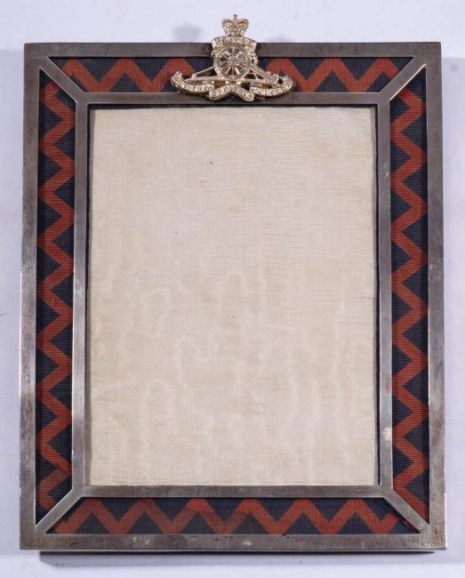 A George V Royal Artillery silver photograph frame, maker Gorham Manufacturing, Birmingham 1916: 27 x 22cm.