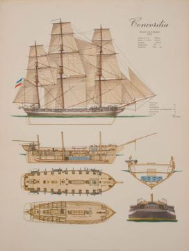 1962 Schliker-Werft Lines illustrations: for several ships including 'Constantia', 'Neptun', 'Nixe', 'Nymphe' and others.