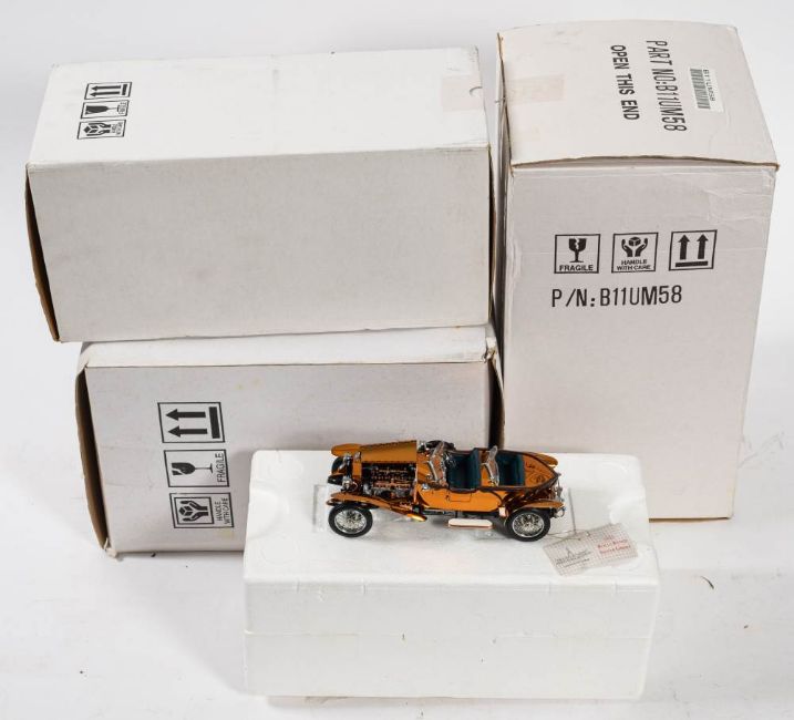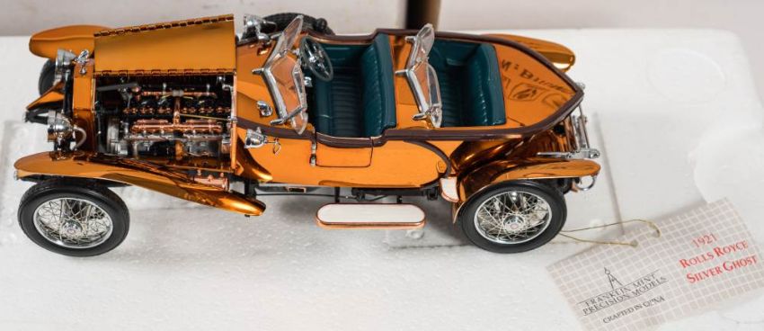 Franklin Mint. A boxed group of four: '1921 Rolls-Royce Silver Ghost with copper body', 'The 1905 Rolls-Royce 10HP' , The Official Colt Model T delivery Truck' and 'the 1913 Ford Model T', all boxed with certificates.(3)