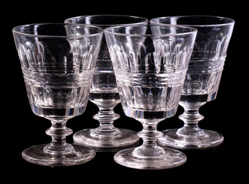 A set of four 19th century glass rummers: with slice and facet cut bucket bowls, on single knopped stems, 12cm.