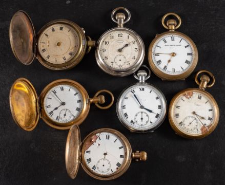 A selection of gold-plated and other pocket watches: to include Ingersoll Crown, The King lever, Limit and others. (7)