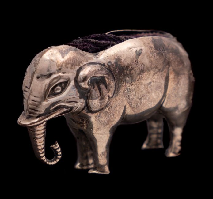 An Edward VII silver novelty pin cushion, maker's mark worn, Birmingham, 1906: in the form of an elephant, 6cm, long.