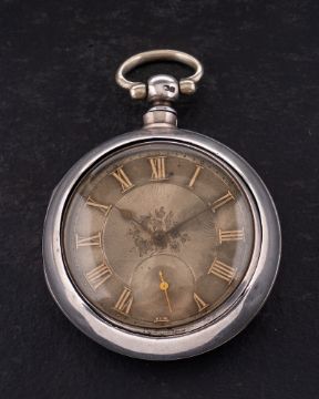 A silver pair-cased pocket watch: the full-plate movement having a lever escapement with Bosley regulation and engraved Jn. Wood, Banff, 20760, the silver dial with raised gold Roman numerals, engraved decoration to the centre, a subsidiary seconds dial and spade hands, the inner case hallmarked for silver London, 1884, diameter 52mm.