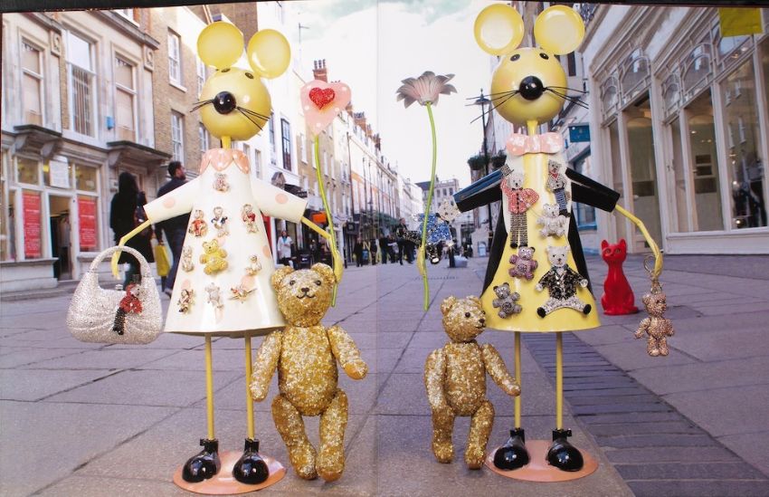 Four brooches by Butler and Wilson,: including a red crescent moon, a Martini glass, a dancing couple and a spray of roses, set with vari-coloured pastes, stamped 'BUTLER & WILSON', length of brooches ca. 8.5-12.5cm, accompanied by original boxes and hardback copy of Wilson, Simon and Marsh, Madeleine: 'Butler and Wilson 40th Anniversary', 2009, (4).