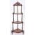 A Victorian mahogany and marquetry corner whatnot, late 19th century,: with four graduated bowfront shelves, the uppermost with fretwork gallery, on knop turned supports; 146cm high, 56cm wide.