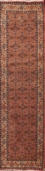 A Contemporary Bidjar runner:, the rose field with herati designs, enclosed by a main ivory serrated leaf and flowerhead medallion border, 285cm x 85cm.