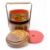 Two Chinese black and gilt lacquered twin section rice containers: of circular outline decorated with butterflies, prunus blossom, with loop carrying handles, 28cm diameter and a circular lacquer box and cover.