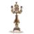A Victorian gilt metal four branch candelabrum:, with urn-shaped sconces on swept foliate supports with clear glass suspensions, with soapstone baluster-shaped stem on a quatrefoil base, 52.5cm high.