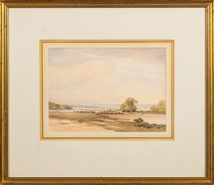 Charles Harrington [1865-1943]-Cattle crossing a bridge, Lewes, Sussex,:-signed, watercolour, 17 x 24cm, together with three other watercolours by Albert Pollitt, William Tatton Winter and English School. [4]See website for further images of this lot www.bhandl.co.uk