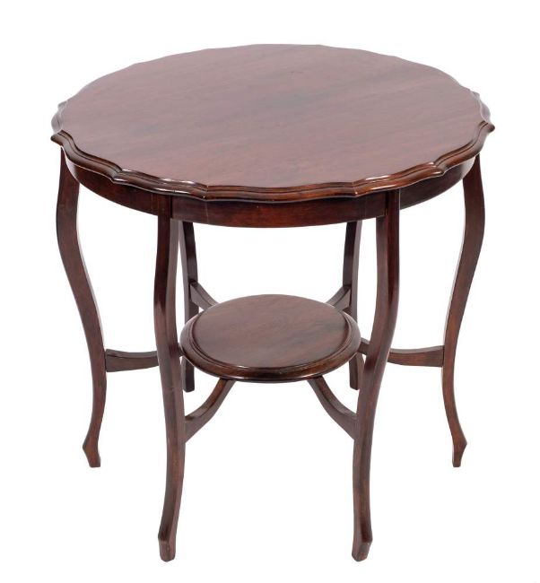 An Edwardian mahogany circular occasional table, early 20th century,: with scalloped and moulded edges, on six serpentine legs with stretchers uniting beneath a circular undershelf; 73cm high, 75cm diameter