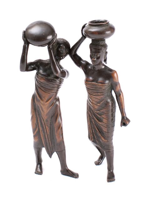 Two Burmese bronze figures: of Pegu female water carriers, each 17cm high.
