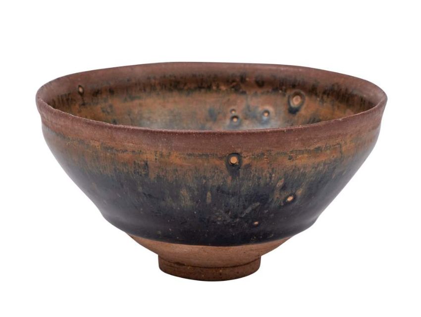 A Chinese Henan black-glazed 'hare's fur' bowl: the rim and foot unglazed, probably Song dynasty, 12cm.