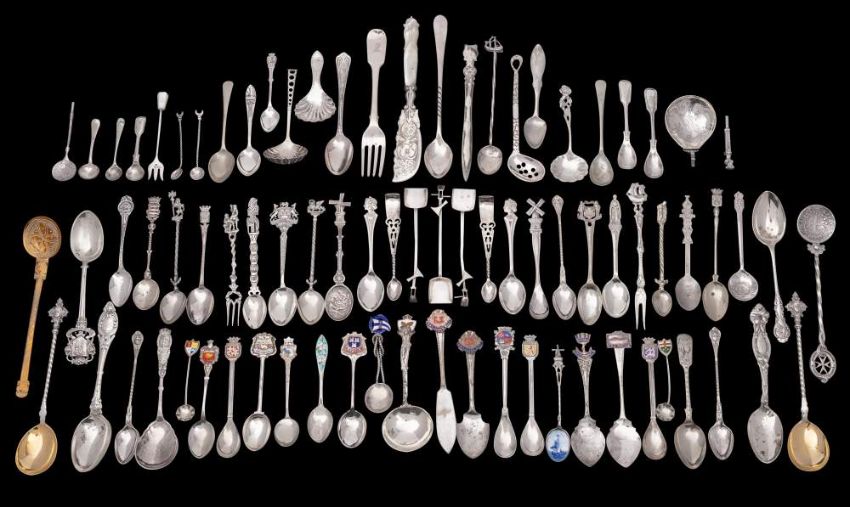 A collection of silver, continental silver and plated flatwares: includes caddy spoon, souvenir spoons, tea and coffee spoons, preserve spoons etc weighable silver 638gms, 20.51ozs