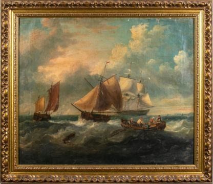 British School 19th Century-Shipping in a bay,oil on canvas, 63 x 75cm.