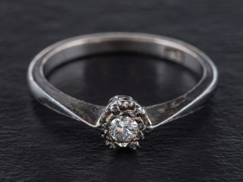 A round, brilliant-cut diamond ring,: estimated diamond weight ca. 0.10ct, H-I colour, SI1-2 clarity, stamped '18CT', ring size M, length of ring head ca. 0.6cm, total weight ca. 3gms.