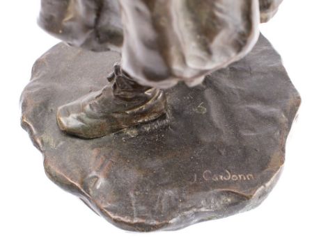 After Jose Cardona (1878-1923)A bronze study of a young girl with basket: signed to the naturalistic base, J. Cardona, 31.5cm high.