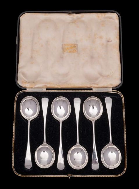 A set of six George V silver Old English pattern soup spoons, maker Roberts & Belk, Sheffield, 1935, cased, total weight of silver 208gms, 6.70ozs