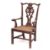 A mahogany and rush seated master's elbow chair in Chippendale style, last quarter 19th century,: the backrest with serpentine toprail above a vase splat formed of openwork scrolling strapwork; the arms with scrolled terminals; with stop fluted straight front legs and splayed back legs united by stretchers; 109cm high, 65cm wide