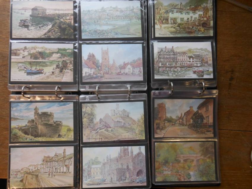 Four postcard albums of assorted subjects: includes Devon topographical, greetings cards, flowers etc. (a lot).