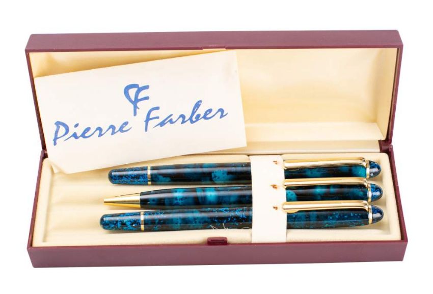 Pierre Faber, a pen set with variegated blue bodies, contained in a fitted case.