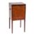 A George III mahogany enclosed dressing stand, last quarter 18th century,: the top hinged at each side, the leaves opening to a platform with apertures for bowls (not present), above a crossbanded door and a drawer; with brass swing handles; 87cm high, 41cm wide, 41cm deep