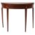 A George III mahogany and satinwood banded card table, last quarter 18th century; the hinged demi-lune top with fan patera marquetry and opening to later baize lining; above line inlaid friezes and straight, square section tapered legs; 74cm high, 92cm wide, 46cm deep, closed