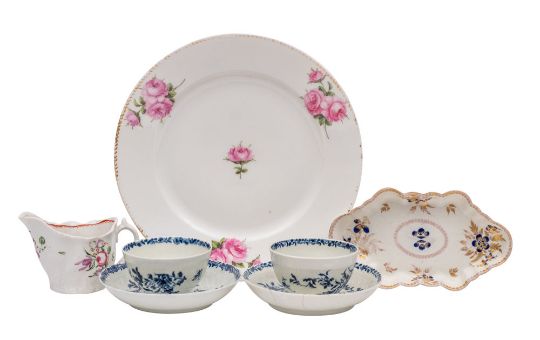 A Coalport [John Rose] low Chelsea ewer painted with floral sprays, circa 1800, 10cm [minor firing faults]; and a Caughley blue and gilt spoon tray, circa 1785, 16cm [hair crack to rim, wear to gilt] 2.