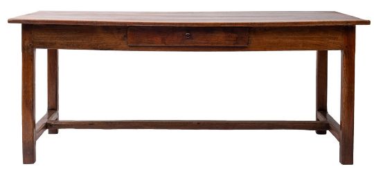A chestnut farmhouse table, possibly French, 19th century; with four plank top above a drawer to one long side; on chamfered square section legs, with a central stretcher; 79cm high, 190cm. long, 79cm wide.