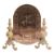 A 19th century cast iron fireback decorated with a mounted knight enclosed within a grape and vine leaf decorated arch, 60cm high together with a fire basket and andirons.
