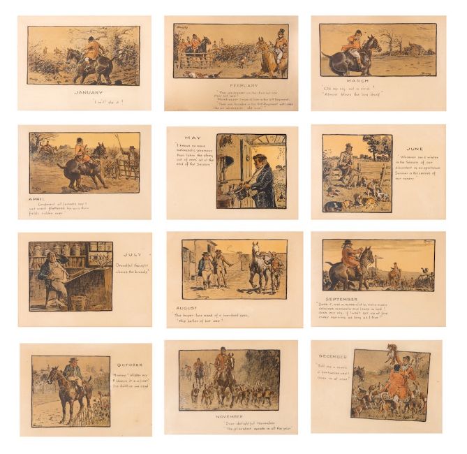 Charlie Johnson Payne, 'Snaffles' (British 1884-1967)Sporting Anecdotes for the Twelve Months of the YearTwelve lithographs each 16.5 x 23cm